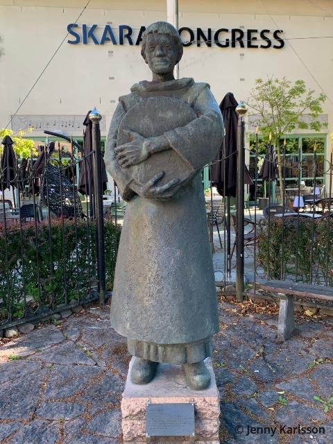Statyn på bilden heter ”Frater Argentus” och utfördes av konstnären Erik Sand (1909-1997) 1974.