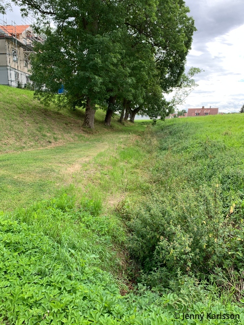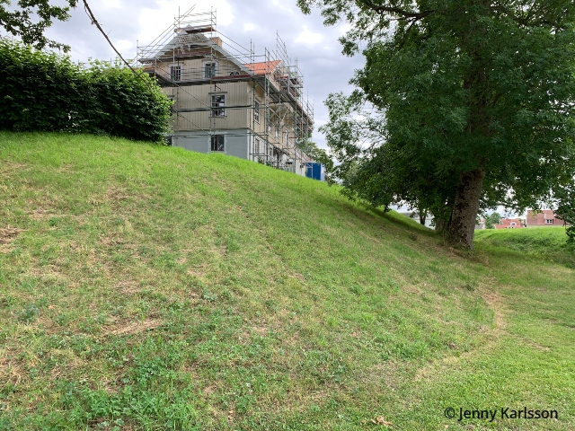 Idag finns tre gamla trähus på toppen av kullen innanför vallarna. I parken finns också lägre vallar utanför de högre med ett dike emellan som från början var den inre av vallgravarna.