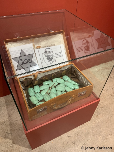 När jag besökte Stadsmuseeet fanns utställningen ”Medlöperi och Motstånd – Nazismen i Norrköping då och nu”. Den berättade om de nazistiska rörelserna i Norrköping under 1930-talet och andra världskriget samt lyfter fram de som valde att göra motstånd. Den belyste även frågor kring främlingsfientlighet i vår samtid. Man kunde bl.a. se en väska som lämnats utanför Stadsmuseets entré den 27 januari 2020. I väskan fanns tvålar och ett par glasögon. I väskans lock låg två laminerade bilder. Till vänster en svartvit bild på den gula stjärna som judarna tvingades bära. Till höger en välkänd, antisemitisk bild av en judisk man. Glasögonen på minner om de mängder glasögon som finns bevarade i exempelvis Auschwitz. Tvålarna för tankarna till de spekulationer som finns kring att tyska forskare utvecklade en process att för produktion av tvål från människroppar. Stadsmuseet polisanmälde detta och väskan utreddes som hatbrott, men utredningen lades ner i brist på bevis. Man valde att ställa ut föremålet för att visa hur antisemitismen kan se ut idag. Det var en stark utställning och ust denna väska fick mig verkligen att haja till och jag blev starkt berörd av innehållet.