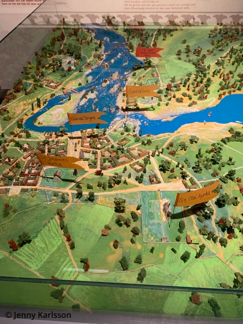 Utställningen ”Den första staden – Norrköpings historia från vikingatid till stormaktstid” träder fyra personer fram ur historien och hjälper oss att se Norrköping växa och förändras, från vikingatid till stormaktstid. Den välbeställda Torfrid som reste en runsten är en av dem. Man möter också borgmästaren, Gudbjörn smed, från 1300-talet. Han såg till att Norrköping fick sina stadsgränser fastställda. Sittande i drömmar hittar man Johan III:s son, hertig Johan. Han planerade slottet Johannisborg på Saltängen i Norrköping, men dog ung 1618, innan slottet var färdigt. Och slutligen stiger Adrianne de Geer fram, hustru till den driftiga Louis De Geer. Här finns också en modell över hur Norrköpingshus kan ha sett ut.