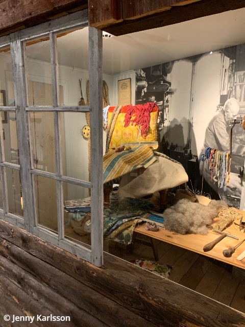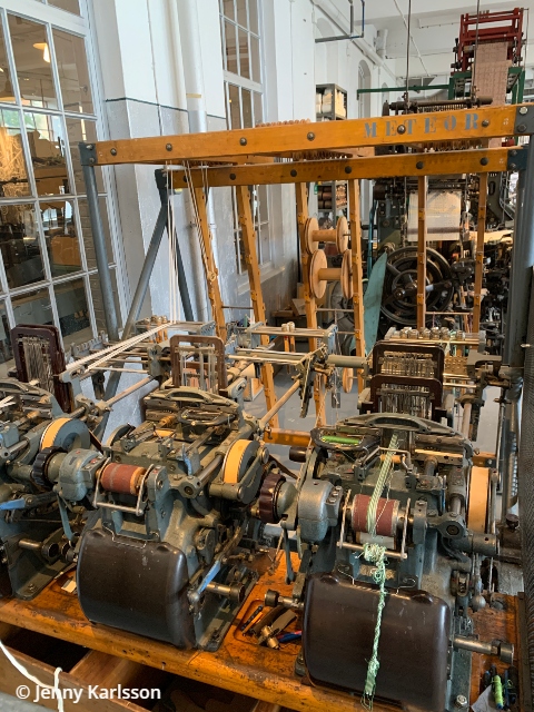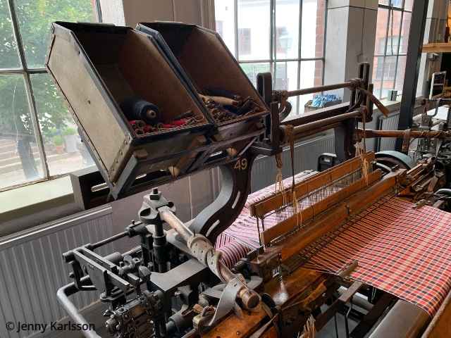 Utställningen ”Människor & Maskiner – I nöd och lust” var den utställningen som jag förväntat mig att se i Arbetets Museum. Under nära 400 år tillverkades det tyg i Norrköping. Miltals meter tyg lämnade varje år fabrikssalarna för att klä hela svenska folket. Under 1800-talet växte stadens textilindustri till att bli den största i landet. Arbetaren fick betala ett högt pris. Lönerna var låga, arbetspassen långa och arbetet hårt. Billigare material och ökad import förändrade plötsligt allt. Fabrik efter fabrik lades ner. I Norrköping står vävstolarna stilla, men i en annan del av världen vävs det som aldrig förr. I utställningen får man se många olika maskiner som har använts vid tillverkningen av tyg.