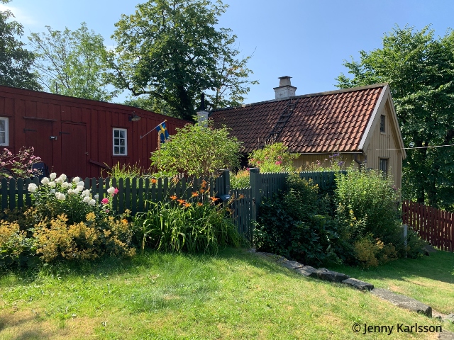 Bebyggelsen består huvudsakligen av timrade trähus i 1-2 våningar. Flera av byggnaderna har blivit om- och tillbyggda i omgångar. Förutom bostäder har ett par av husen längs Allmänna vägen varit värdshus och krog under ett tidigt skede. Det är ett levande område med bostäder, föreningslokaler och ateljéer och jag kan varmt rekommendera ett besök här. Det är verkligen en oas mitt i storstadens larm.