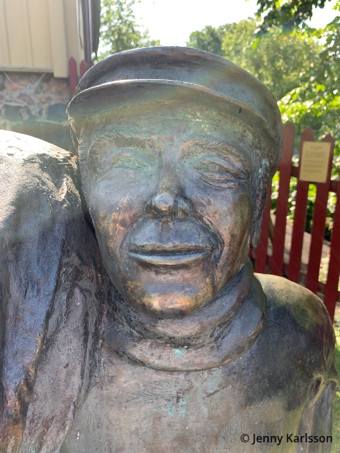 På Pölgatan inne i Gathenhielmska kulturreservatet står sedan den 1 september 1996 en bronsstaty föreställandes en sjöman – Stigbergs-Lasse, med sin säck på axeln. Kanske har han precis kommit hem från sin senaste resa och är nöjd över att äntligen vara hemma igen.