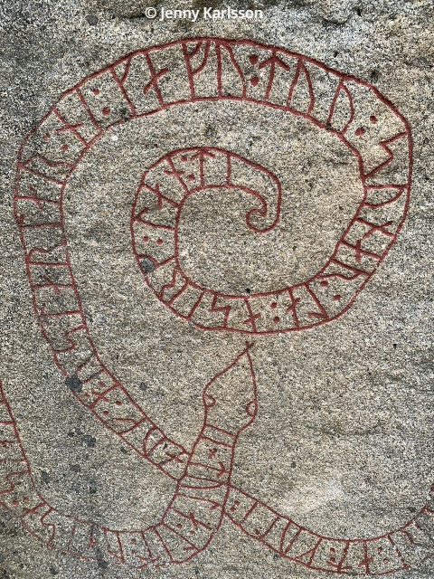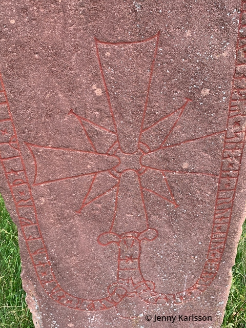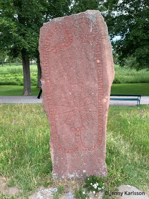 Runinskrift Sö 178 har varit känd sedan början av 1700-talet. Den fick sin nuvarande plats 1928. Ristningen med sitt kors visar stora likheter med en runsten (Sö 177) som sitter inmurad i Kärnbo kyrkoruin och stenarna är utan tvivel utförda av samma ristare. Det blev inget besök där vid vårt besök i Mariefred sommaren 2023, men när vi var där 2017 blev det ett stopp där. Är du nyfiken på Kärnbo kyrkoruin så skrev jag om det på min förra blogg, se länk ovan.