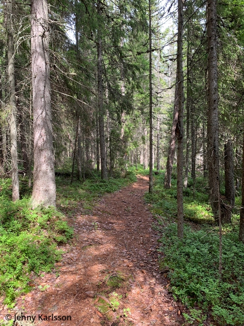 Slingan upp till Vikbottberget är ca 1 km från parkeringen på campingen. Det var en härlig promenad och relativt lättvandrad. Visst, det finns partier som är lite besvärligare, men jag med mina dåliga knän och stukat självförtroende (ffa gällande mina knän) klarade av promenaden och utflykten. Men, man går ju upp och ned för ett berg så det är ingen runda man tar med sig barnvagnen eller rullatorn på…