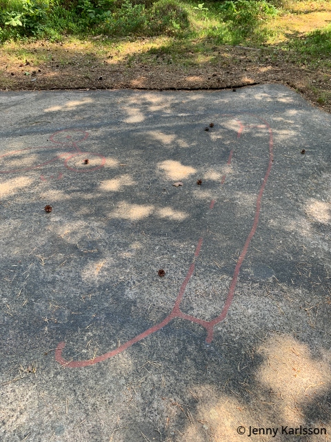 De vanligaste hällristningsmotiven i Bohuslän är skålgropar. De förekom redan på stenåldern och man fortsätter att göra dem långt efter att hällristningstraditionen dött ut. Skålgropen är också den symbol som är svårast att tolka. Den finns som enskilt motiv, i grupper med andra skålgropar eller som här som en del av en större hällristning. Skålgroparnas betydelse varierade förmodligen beroende på när de gjordes, var de gjordes eller vem som gjort dem.
