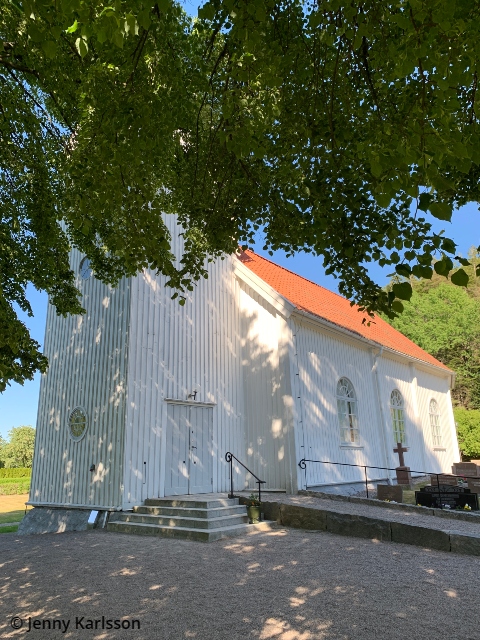 Kyrkans nattvardskärl är från den medeltida klosterkyrkan och troligen en gåva av kung Haakon Haakonson. Alldeles intill kyrkan finns ruinerna efter Dragsmarks kloster, som jag skrev om i mitt förra inlägg.