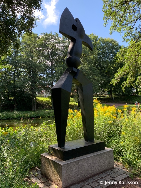 Här finns flera konstverk att beskåda. Det första konstverket jag såg var ”La Mano” av Liss Eriksson (1919-2000). Konstverket skapades som ett minnesmärke över de svenskar som dog under strid i det spanska inbördeskriget. Skulpturen i Boulognerskogen är en bronskopia av ett större original som sedan 1977 står på Katarinavägen i Stockholm. Konstverkets ursprungliga plats i Skövde var Kulturhustorget, men nu finns den då Boulognerskogen. Liss Eriksson var konstnär och skulptör. Han studerade ursprungligen till arkitekt men avbröt dessa studier och började studera på Konsthögskolan. Han var verksam i Stockholm och är rikt representerad runt om i landet.