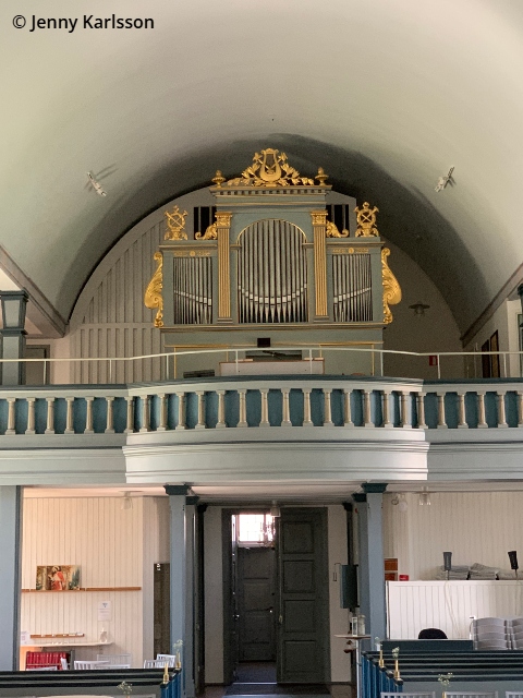 Kyrkans nuvarande orgel är från 1996 och är byggd av Grönlunds Orgelbyggeri AB, Gammelstad. Orgeln har 32 stämmor fördelade på två manualer och pedal samt 1000 Setzer-kombinationer av datoriserad typ. Den första orgeln, från 1841, var placerade på läktaren och var ett verk av orgelbyggarfamiljen Söderling i Göteborg. Den nuvarande orgelfasaden i empire stammar i huvudsak från 1841 års orgel.