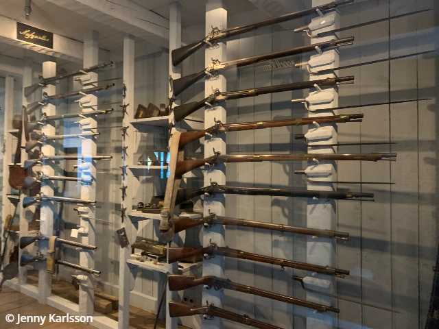 För att strida till sjöss behövdes vapen som kanoner, men även handeldsvapen och svärd för närstrider ombord. När skeppen låg i hamn så förvarades dessa vapen i det s.k. Tyghuset. I utställningen får man se många av de vanligaste vapnen mellan 1600- och 1800-talen.