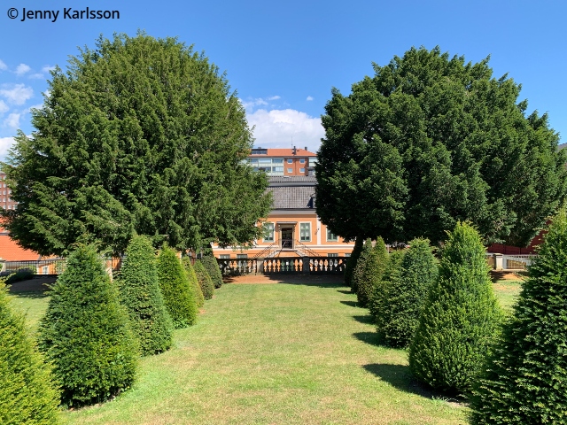 Den lilla barockträdgården framför Blekinge museums huvudbyggnad rekonstruerades 1978 med en broderiparterr av klippt buxbom efter ritningar av Sven Hermelin.