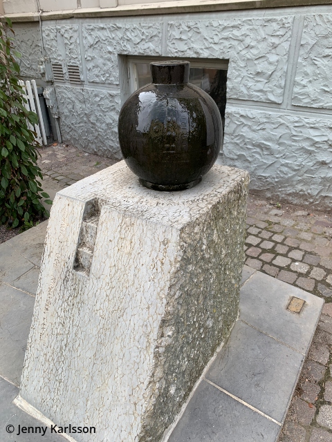 Utanför huset finns en minnesplats över Estrid Ericson. Minnesmärket, som fått namnet ”Källan”, är utförd av Yvonne Nimar (1952-). Den består av en skulptur med rinnande vatten, som omges av en ekbänk, ett vattenblänk och ett japanskt körsbärsträd. Skulpturen är en urna av diabas, som är inspirerad av en tidig tennvas, som Estrid gjorde 1924. Denna vas var i sin tur inspirerad av en vas i lergods från Peru. Ett granatäpple i diabas symboliserar Estrid Ericsons sökande efter kunskap.