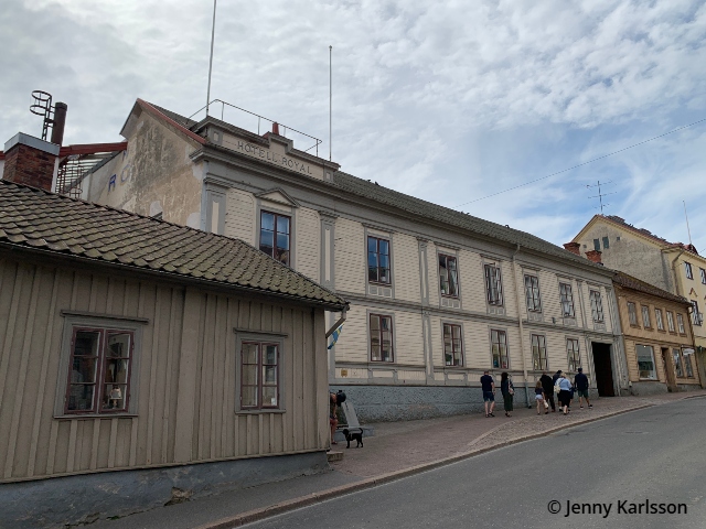 Huset på bilden uppfördes 1844. Här låg fram till mitten av 1960-talet hotell Royal. Hotellets skylt i svart och guld finns fortfarande bevarad i det yttre takfallet.