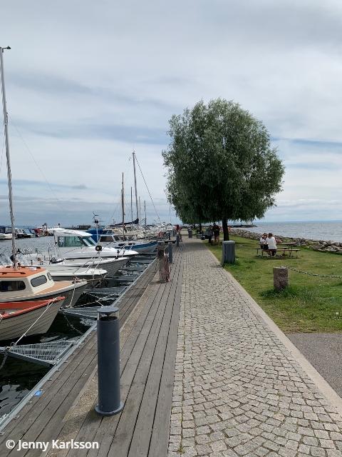 Hjo är en sjöstad, som med stolthet bär en kogg i sitt stadsvapen. Det är dock inte så mycket bevänt med sjötrafiken på Vättern längre. Ända in på 1960-talet gick ångfartyget Trafik reguljära turer till Hästholmen på andra sidan Vättern och en annan skuta angjorde hamnen. Trafik finns förvisso kvar, men turerna hör till sommaren till… Hamnen är ändå fortfarande något av stadens själ.