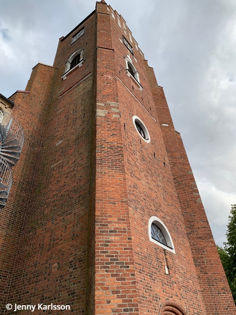 Rödtornets tre klockor gör fortfarande tjänst eftersom klosterkyrkan saknar klocktorn!