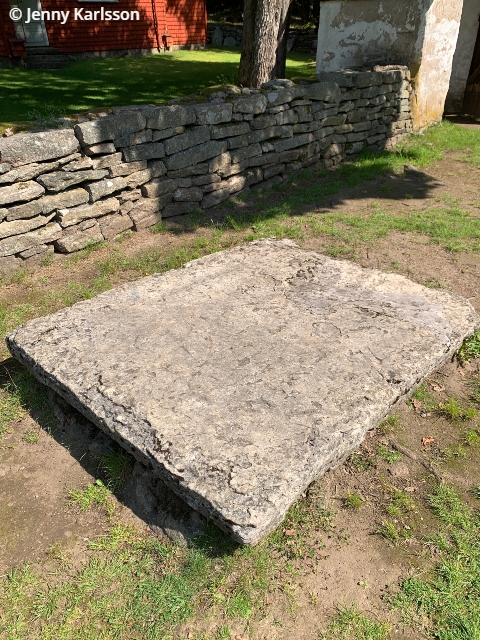 Utanför muren ligger en s.k. brudsten från Toarp socken, där den låg utanför kyrkan. Efter uttåget ur kyrkan stod brudparet på brudstenen och visade upp sig för församlingsborna.