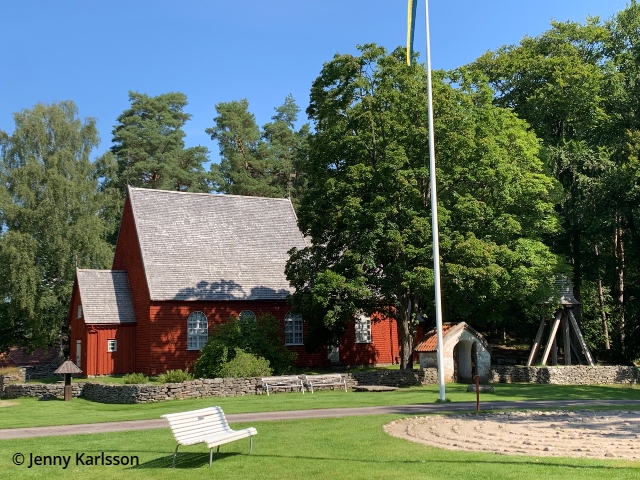 Med flytten följde kyrkans altarskåp och predikstol, medan bänkinredningen kommer från Vänga kyrka. Tanken var att kyrkan skulle fungera som ett museum och De Sju Häradernas Kulturhistoriska Förening flyttade sina samlingar dit.