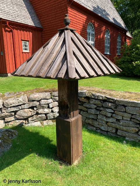 Fattigbössan utanför kyrkogårdsmuren är en kopia av den bössa som fortfarande finns uppställd vid uppfarten till Kinnarums nya kyrka.