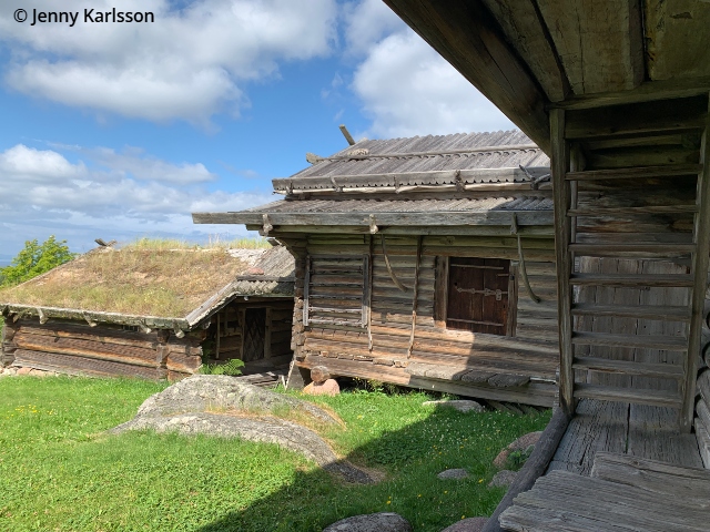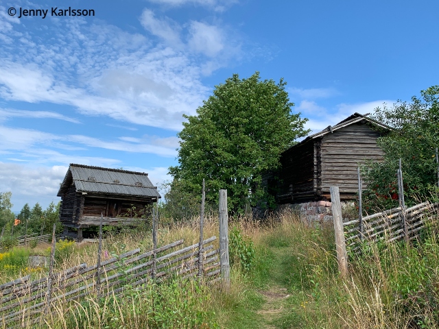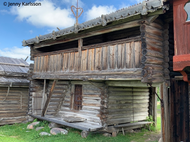 Härbre från 1694. Byggnaden kommer från Ingbergsgården i Laknäs. Den här typen av härbren med ingång från långsidan, är ovanliga i Nedansiljan.