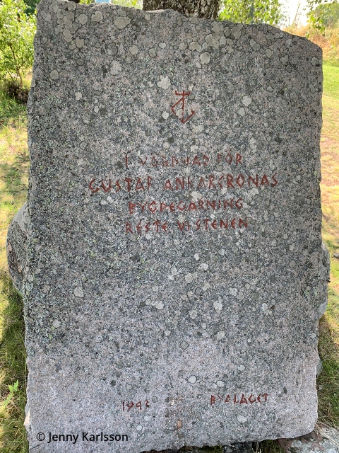 Här finns även sten med texten: ”I vördnad för Gustaf Ankarcronas bygdegärning reste vi stenen. 1942. Byalaget”.