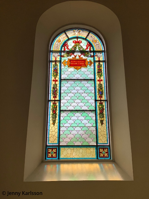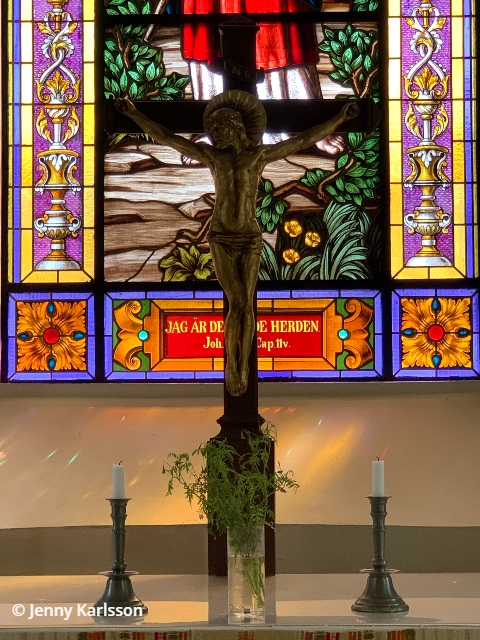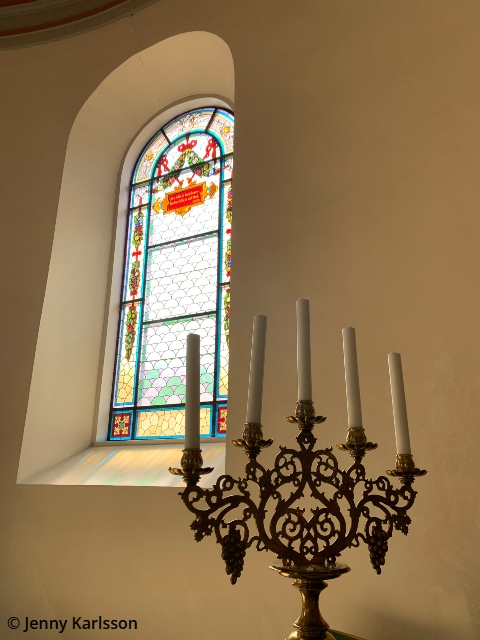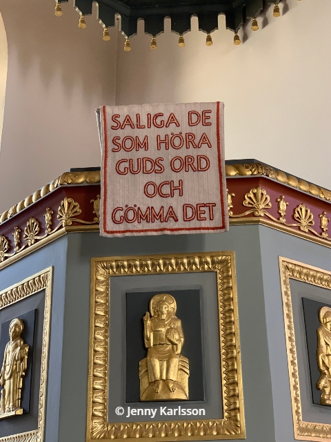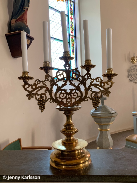 Bland senast skänkta inventarier märks vackra kalkkläden av kyrkvärd Ulla Johansson och stolor i olika liturgiska färger, skänkta av vävlärarinnan Karin Häll-Stark i Skåne.