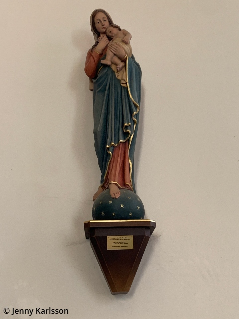 På jungfru Marie Bebådelsedag invigdes en mariaskulptur med placering på kyrkans norra korvägg. Skulpturen är ett italienskt arbete och skänkt till Hjo kyrka genom medel som Hjo kyrkas ungdomskör samlat in under sina körresor.
