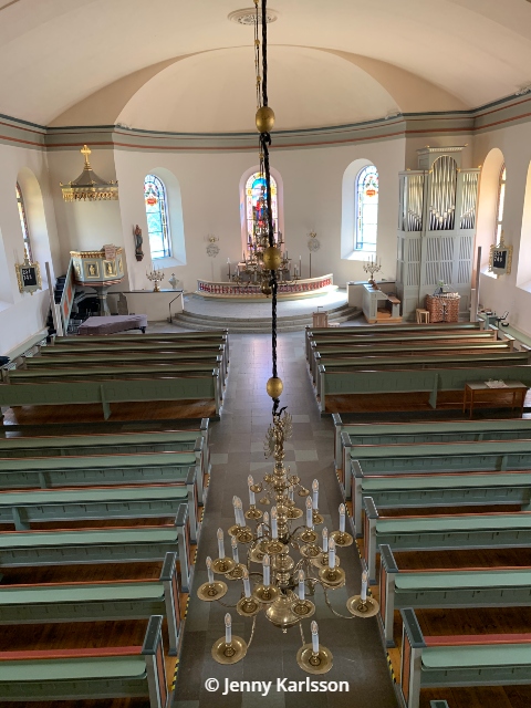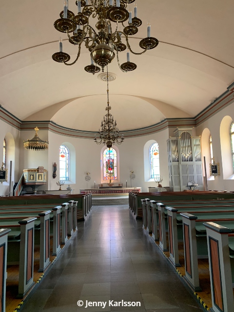 Kvar från den gamla kyrkans tid är också en offerkista.