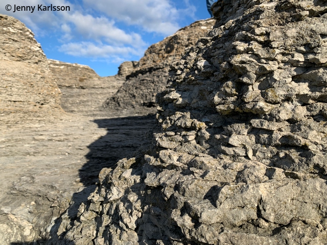 Under lång tid pressades korallreven samman under högt tryck och den öländska kalkstenen bildades. Forskare anser att det tog 1000 år av kalkutfällningar för en millimeter av dagens kalksten skulle bildas.