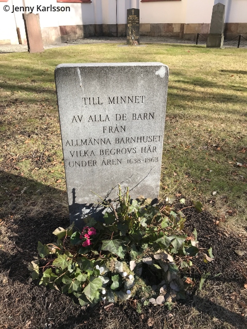 År 1988 restes en sten till minne av de barn från det närbelägna Allmänna Barnhuset som under åren 1638-1863 begravdes här på kyrkogården. Texten på stenen lyder: ”Till minnet av alla de barn från Allmänna Barnhuset vilka begrovs under åren 1638-1863.”