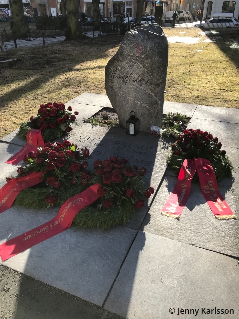 Olof blev mördad på öppen gata på Sveavägen den 28 februari 1986, inte långt ifrån där han nu är begravd med sin hustru Lisbeth.
